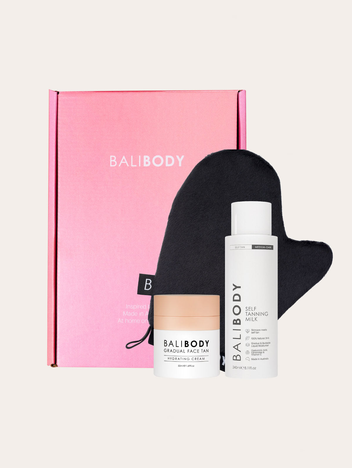Achieve a buildable, natural-looking tan while nourishing your skin with the Gradual Glow bundle.