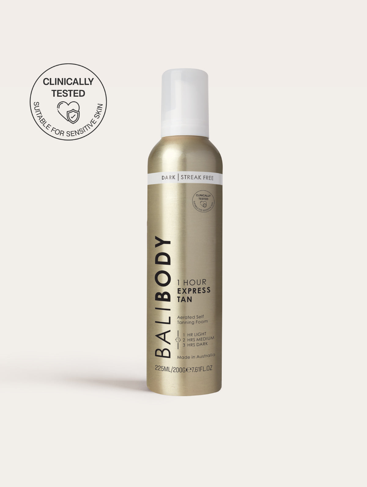 The new 1 Hour Express formula dries and develops quicker than Bali Bodyās Self Tanning Mousse. While the 1 Hour Express will provide a quicker tan, the Self Tanning Mousse in shade Ultra Dark is the darkest shade of tan available in the Bali Body range.